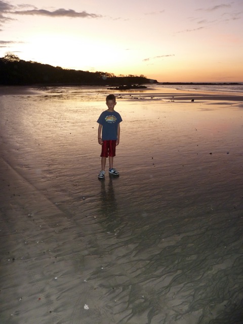 Surfing, like all new things, has been a test in patience and humility. It has not been frustrating at all, since by its very nature, it is fun and pressure free. But I do feel awkward and wide eyed the majority of the time. Matt and I are surfing a little “further out” than the kids, so we have only been able to watch them surf from behind. Every time I look toward the beach, though, I see Ben or Jacob riding a wave. They have picked it up with enthusiasm and ease. Abby spent our surf time with Valerie, who played with her in the waves and on the beach. She took her on a walk down the beach to find fish and crabs, after a swim lesson with Frank. She is amazingly comfortable in the ocean and with all the great people spending time with her.