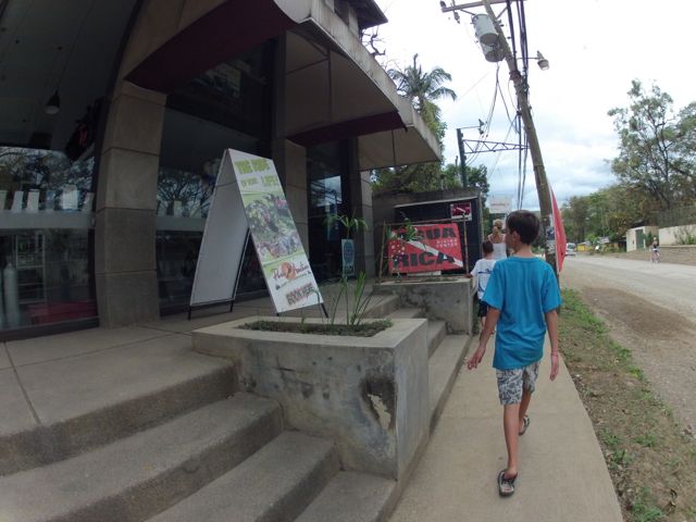 Part four on life in Tamarindo, this time we have some photos from around town. The town is an interesting mix of poverty, luxury, tourism and surf town. Almost all of the roads are dirt, except for portions of the main drag and a little pavement strip (only one side of the road for some reason) near the road to our home. These photos don’t really tell the story of the town very well, but they are what we have for the moment. Yesterday, we took a walk further into the residential side of town (away from the beach) and found quite a few new hotels, places to eat and signs to see.