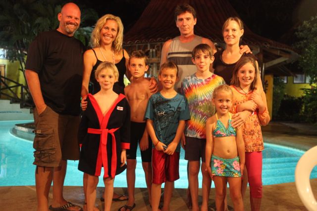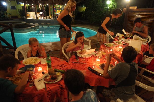We had a wonderful Christmas eve here in Costa Rica. We spent the day with our friends from Canada (Mark, Carolyn, James, Annie and Christopher) and enjoyed carryout from our favorite italian place (Las Brasas) by the pool at the Luna Llena. It was perfect. The kids swam (although we did have to deal with a few swimming langostas) and Mark, Carolyn, Erin and I enjoyed drinks by the pool and a great meal.