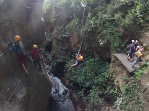 Carolyn and Mark invited us to come to Rincon de Vieja with them on Saturday, so at 6 AM all ten of us piled into a van for a two hour drive inland toward one of the many volcanoes in Costa Rica. We spent the day tubing down a river, zipping through the canopy, climbing up the canyon walls and riding horses through the forest. Although it wasn’t a short drive, the change in scenery was so dramatic that I couldn’t believe we were only two hours from the beaches of Tamarindo.
