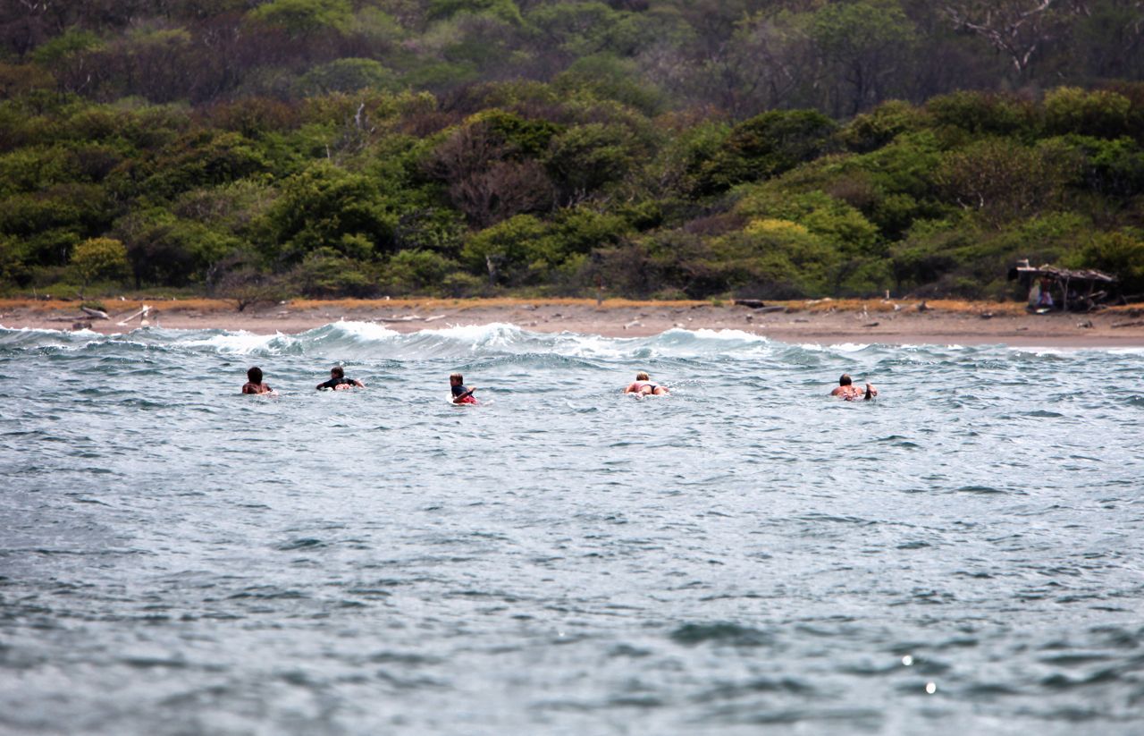 Omar kicked into high gear. I still get chills thinking about it. He has been a surfing hero to the boys and a dear friend to our family since we met our first day in Tamarindo. He quickly abandoned his (very, very nice competition board), told Jake in a calm voice to relax and summoned some sort of super hero swimming power. He grabbed Jacob and his board, pulling his own board behind him by the leash, diving under and swimming through wave after wave at incredible speed and with total focus. I was running on adrenaline, paddling as fast as I could, getting pushed backward with each wave. Before I knew it they were 10 feet, 30, 50 feet ahead of me. By the time I got through the last large set, they were through and half way back to the boat. At this point I spotted Ben, calmly hanging out on his board, (thank goodness) and Brian behind me after coming in to check on us. I kept paddling toward the boat, toward Jacob. Brian was with Ben trailing close behind us. Jacob was on the boat, staring into the ocean before I even touched the boat.