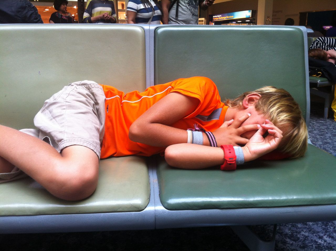 Our flight was delayed in taking off from Newark because of traffic, so Erin and I were a little stressed about making our next two connecting flights, but the real first glitch in the travel was Jacob puking as we were landing in London. We weren’t surprised, we have kids that do that a lot while traveling… When we landed, Jacob was exhausted, but we had to rush him around as we only had about 35 minutes before our next flight took off to Frankfurt. I knew we weren’t going to make the flight when we jumped in the security line and I saw on the monitors that the plane was boarding. The woman at the entrance of security confirmed it for us. “Sorry folks, plane is taking off in 5 minutes..”