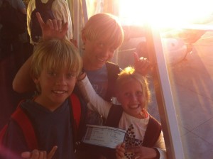 The flight to London was long, but was pretty smooth. I haven’t been on a long “over the pond” trip in about 10 years so I must admit, I was very impressed with the amenities that United provided on the ride over. We had on demand television with hundreds of TV shows and another 100 movies at every seat on the plane. We had a plug at our seats (in coach!) so that we could charge ipods, etc. It was quite the production. Our flight was an overnight flight, so we tried to sleep as much as we could, and the kids got a little rest, but Erin and I were unsuccessful.