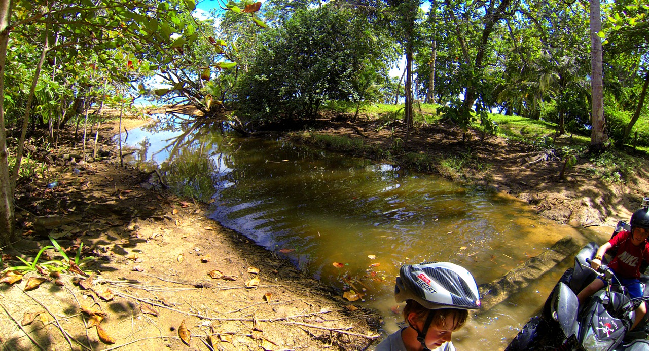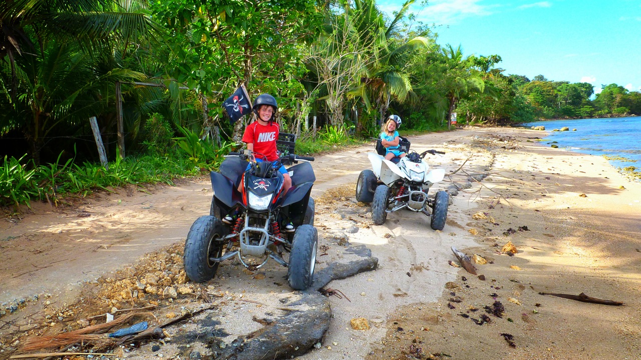 It all started the day before when we were looking for something fun to do on our last full day in Bocas. The kids have always wanted to ride ATV’s in Costa Rica, but that has proven to be challenging since we have three kids and only two adult drivers to ride with, so we’ve never done it. We had seen the ATV’s in Bocas over the week and when we walked by their storefront, we decided to inquire about whether we could toss two kids on the back of one ATV. Steve, the owner of Flying Pirates, said that we could do that, but if we wanted to, it would be fine to let Ben drive his own ATV once we got off of the main roads. Ben (10 years old) lit up like a light bulb, “REALLY?!” – “Yep” replied Steve. At that point there was no turning back, we were IN.