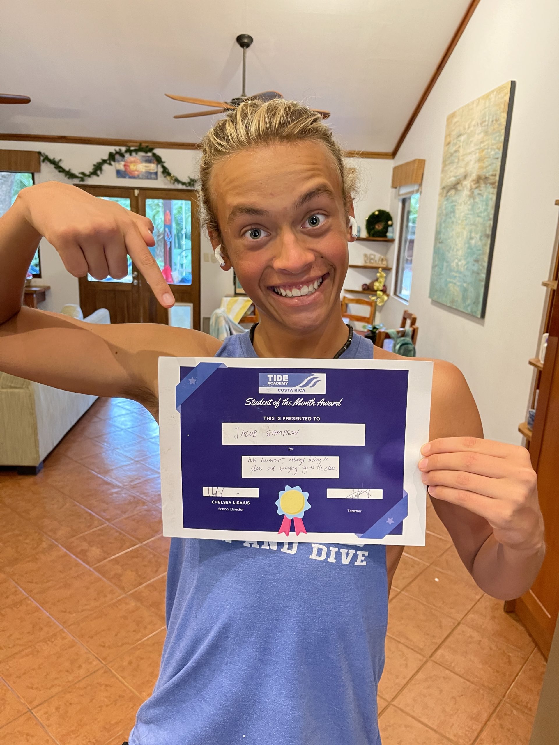 I think December was the “Month of Jacob” this year and he’s deserved every moment of it. Both Ben and Abby have received the honor of being a TIDE Student of the Month during their career and Jacob always reminded us that he was yet to receive that honor. To his surprise, in his final month at TIDE, Jacob was awarded the December 2021 Student of the Month honor and it was well deserved. They accredited his humor as well as the joy he brings to every class every day as a part of the recognition and I couldn’t agree more. Jacob was genuinely excited to receive the award and it proudly hangs in our office at the house here in Costa Rica.