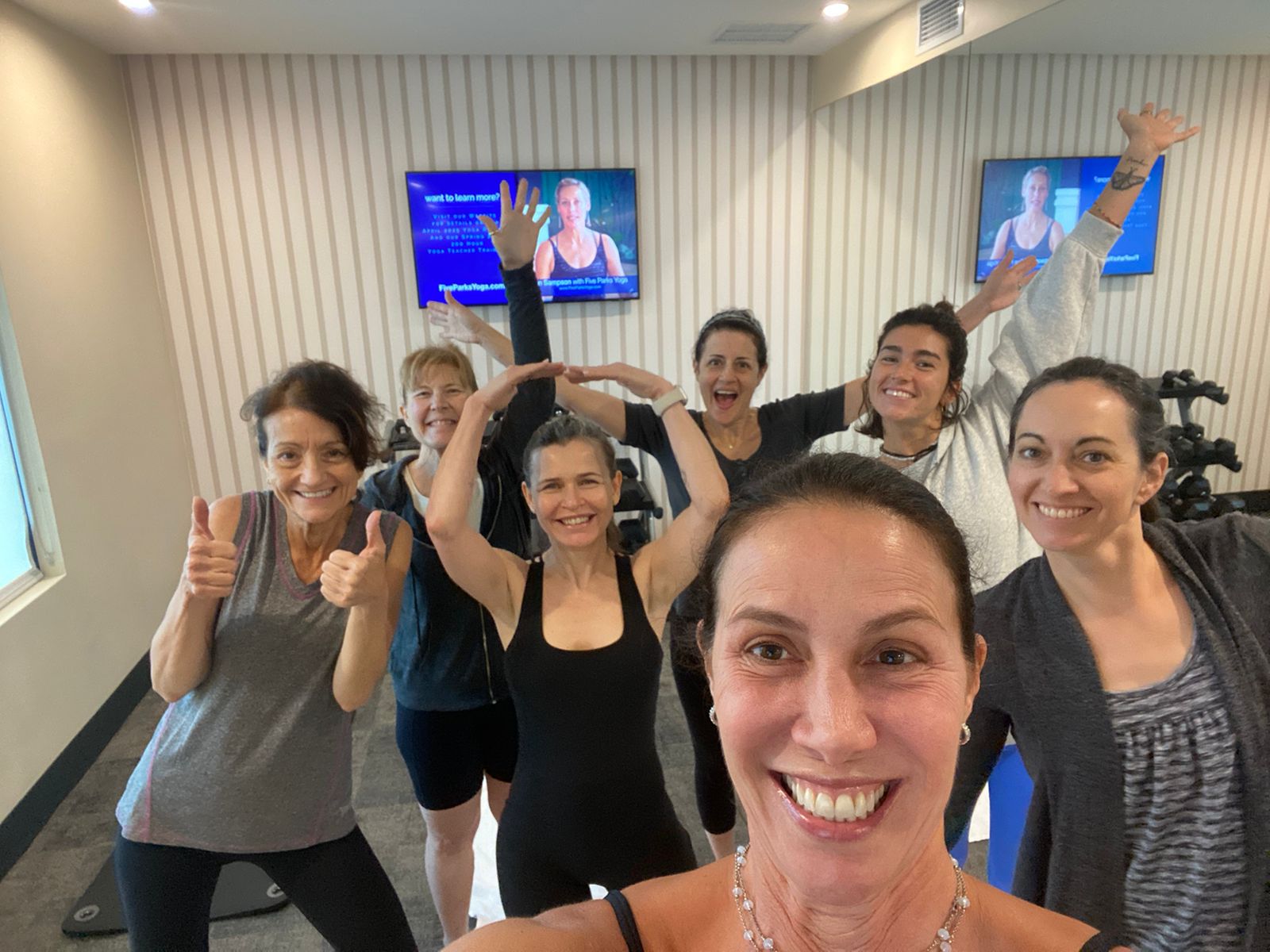 They practiced yoga together in hotel gyms, even doing Erin’s YouTube classes, including one filmed during the retreat. The sight of them moving through poses in a gym while laughing and bonding was a reminder of the spirit of the group.